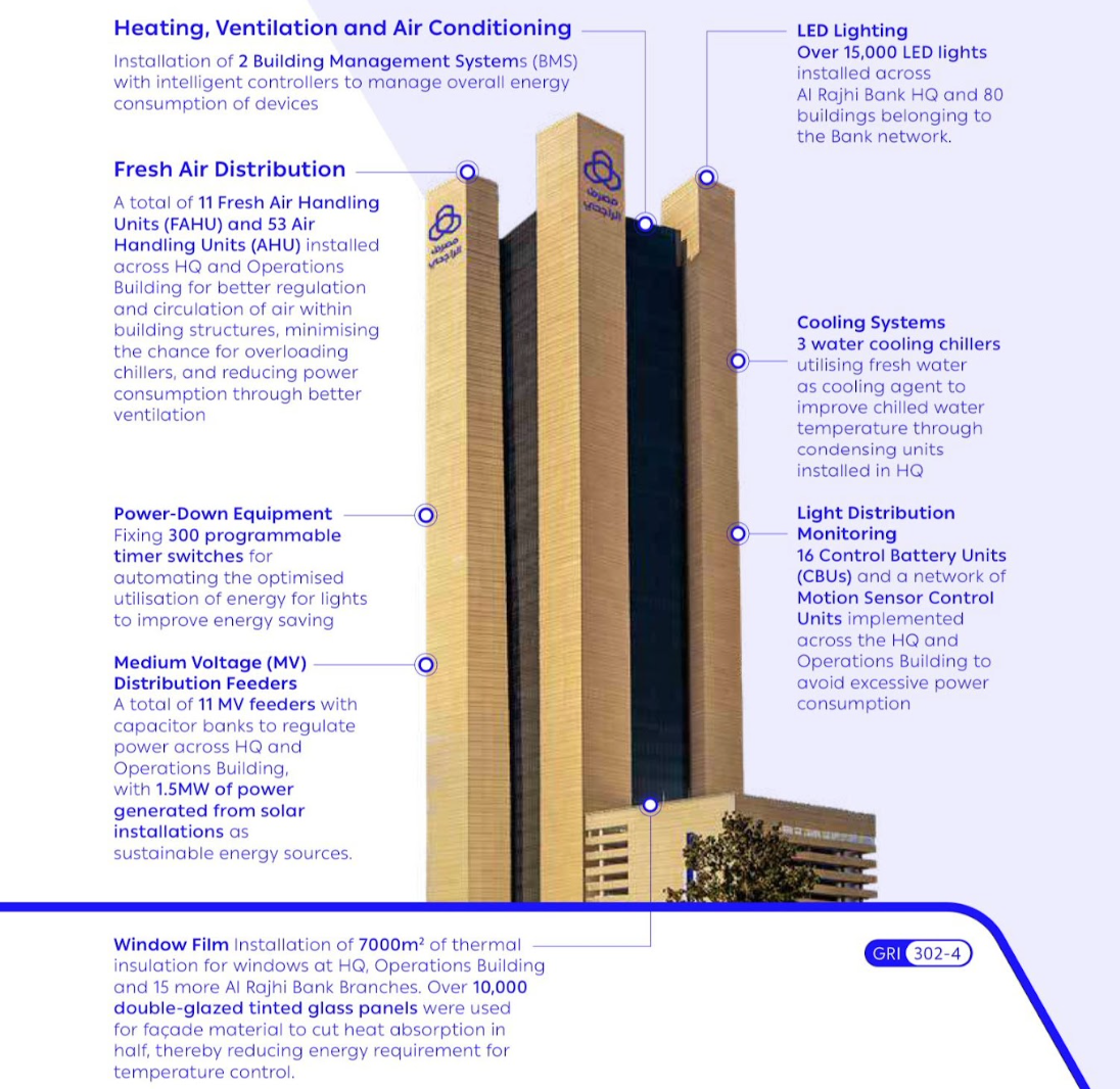 Al Rajhi Tower is a living example of sustainable finance, as it relies on technologies that reduce energy consumption and uses eco-friendly materials, reflecting the bank's commitment to environmental standards.