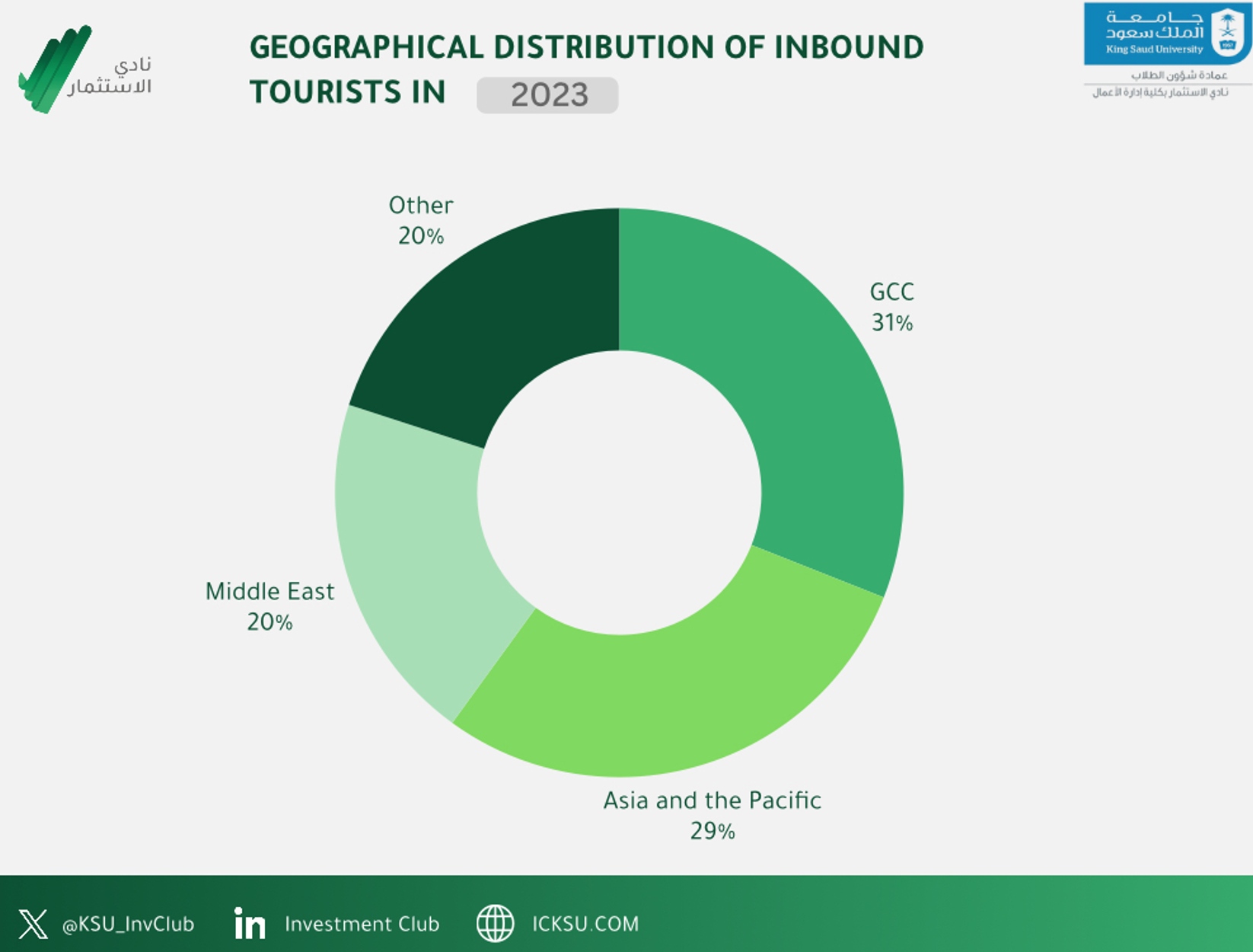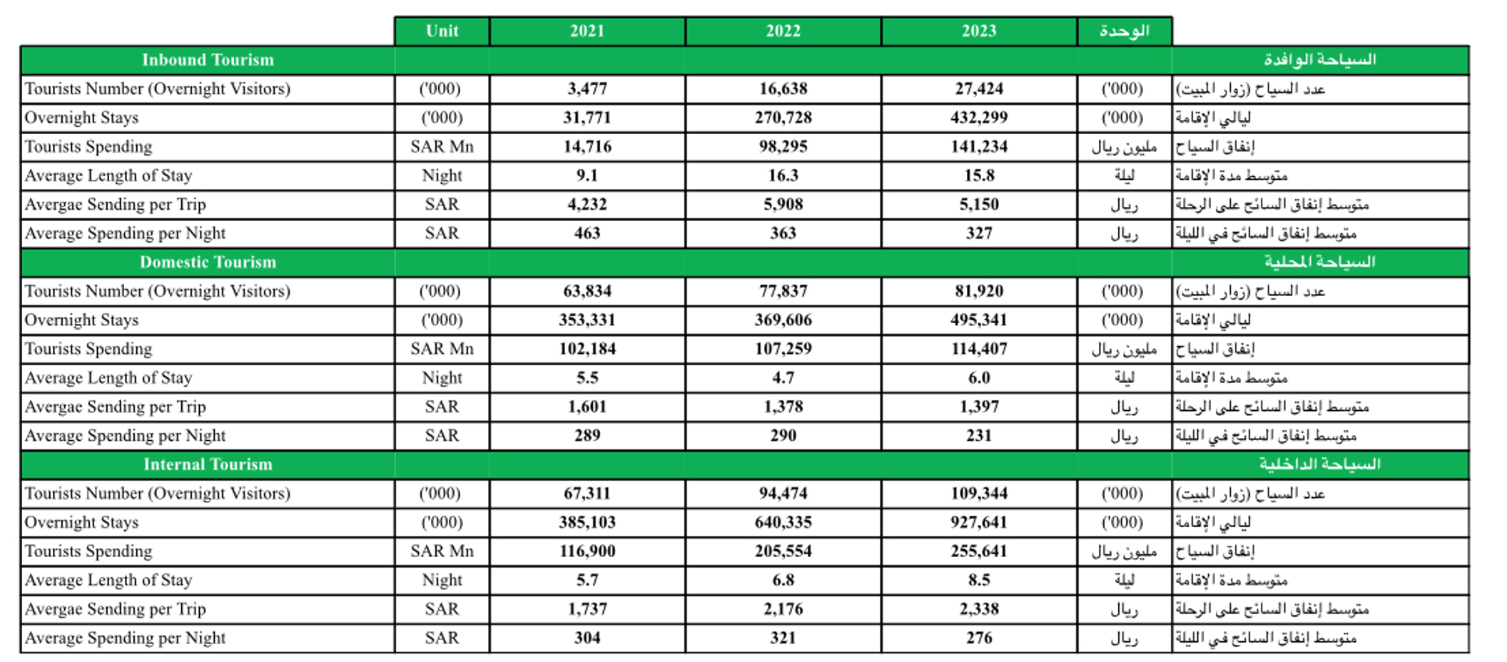 The number of inbound tourists to Saudi Arabia set a new record in 2023, reaching 27.4 million visitors. This was due to promotional efforts through marketing campaigns and the expansion of electronic visa eligibility.