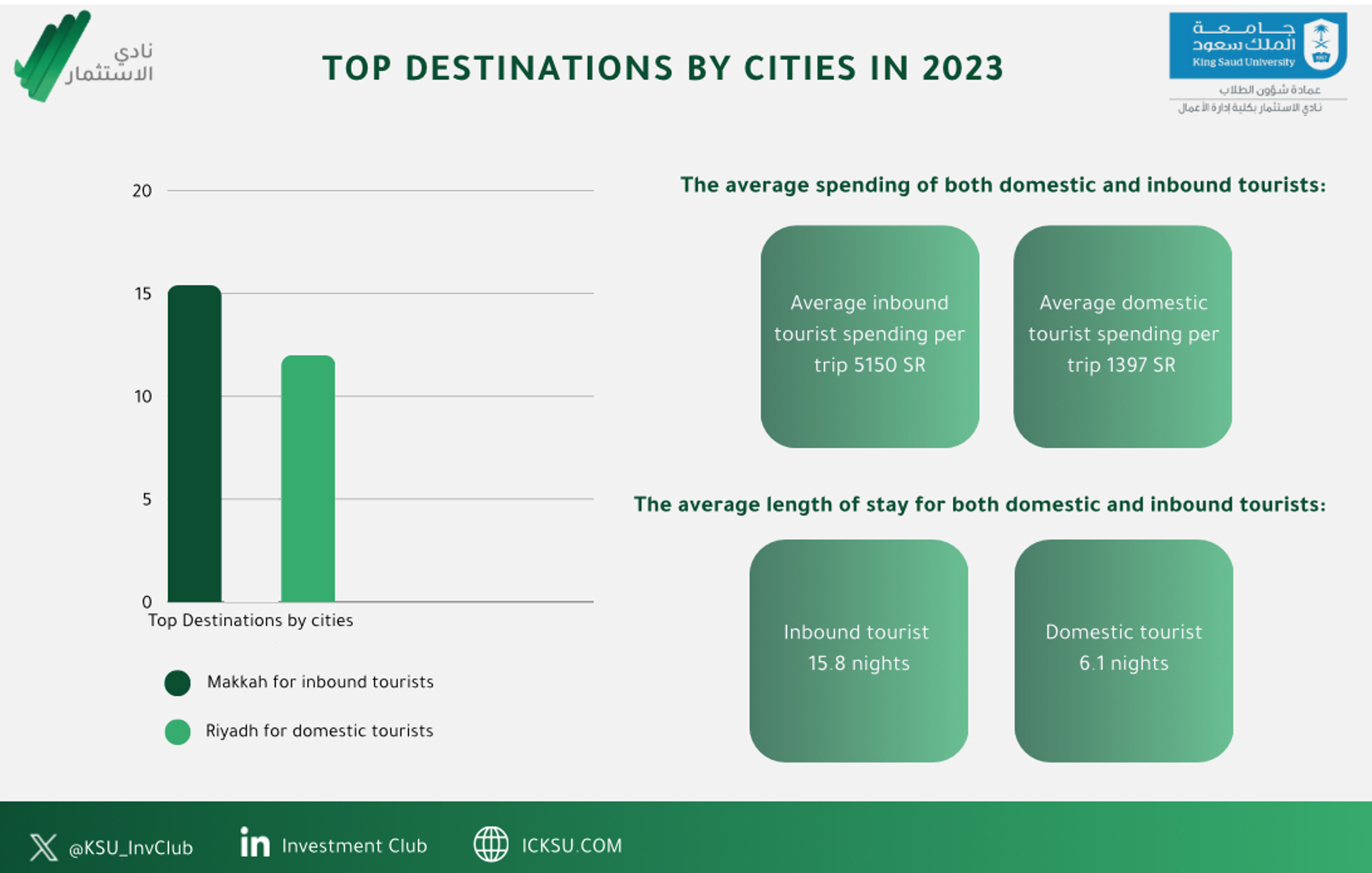 Domestic tourism spending across various destinations in the Kingdom reached SAR 114.4 billion, an increase of 138% compared to 2018.
