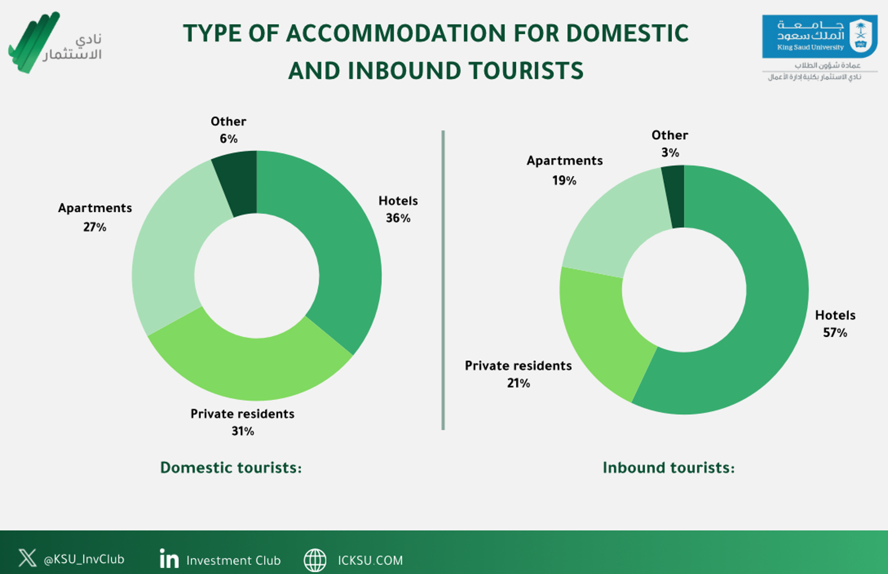 A comparison between domestic and inbound tourists in terms of accommodation types.